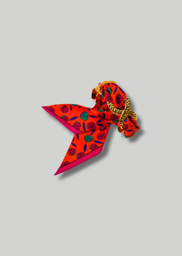Ruban de soie: Gypsy Tales Orange - Ecru coeurs bleus.