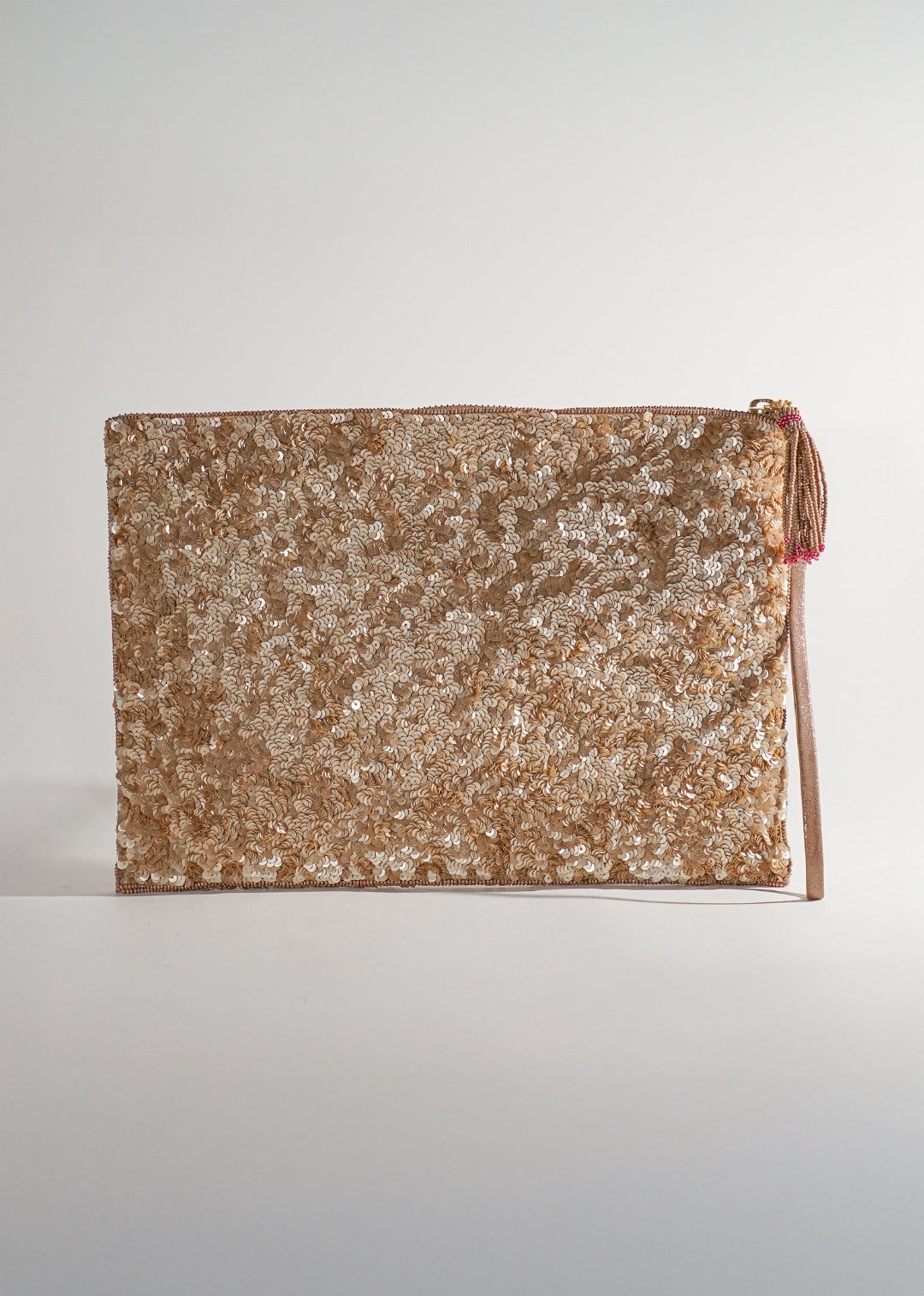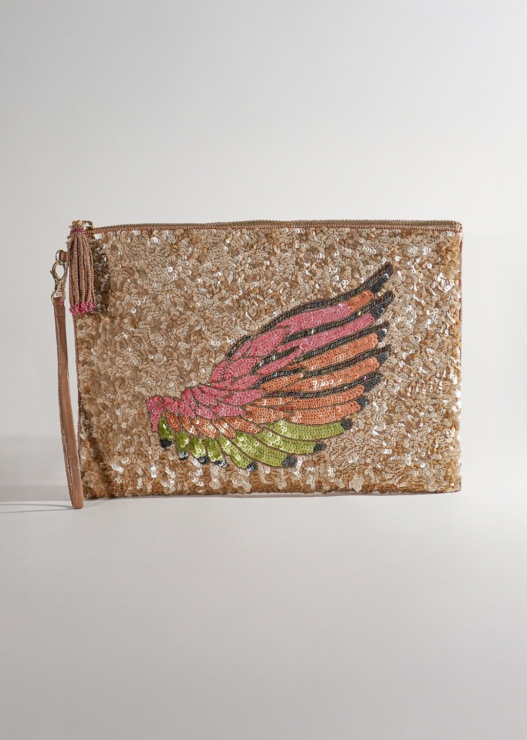 La pochette Aile d'Ange en sequins est entièrement brodée à la main. Elle est à la fois une pièce d’exception et un compagnon du quotidien. Assez spacieuse pour accueillir tous vos essentiels : porte-cartes, clés, papiers, mouchoirs… elle vous accompagnera partout !