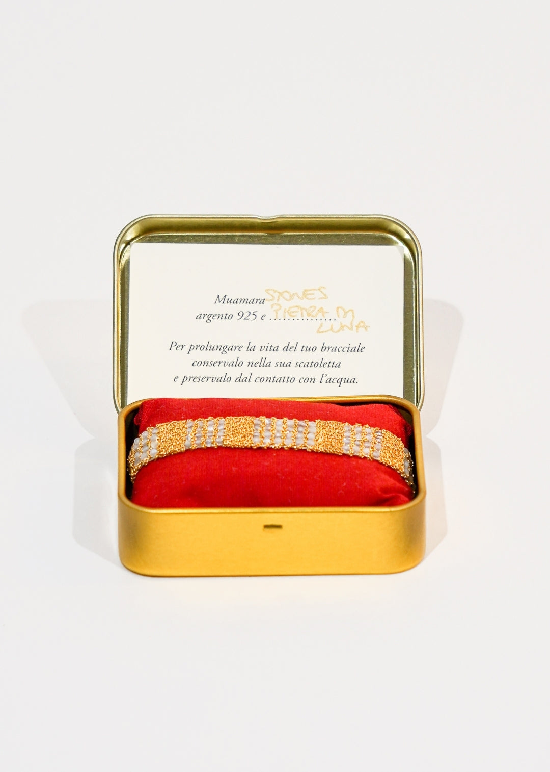 Le bracelet STONES est tissé de "Pierres de Lune".