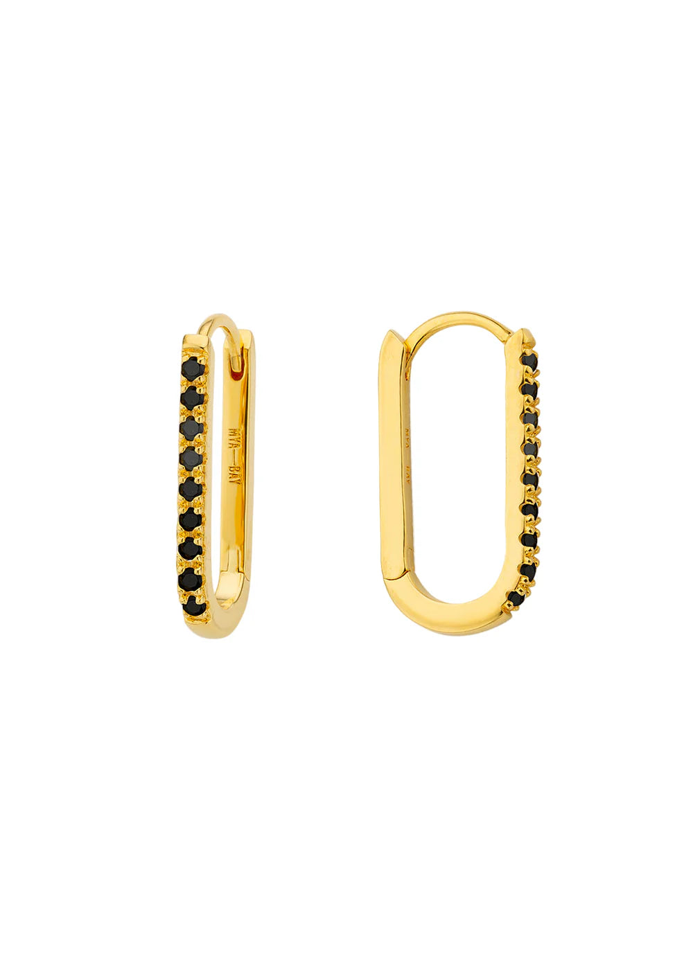 Les boucles d’oreilles BLACK SHINY JAZZY de MYA—BAY sont dorées à l’or fin recyclé 24 carats.