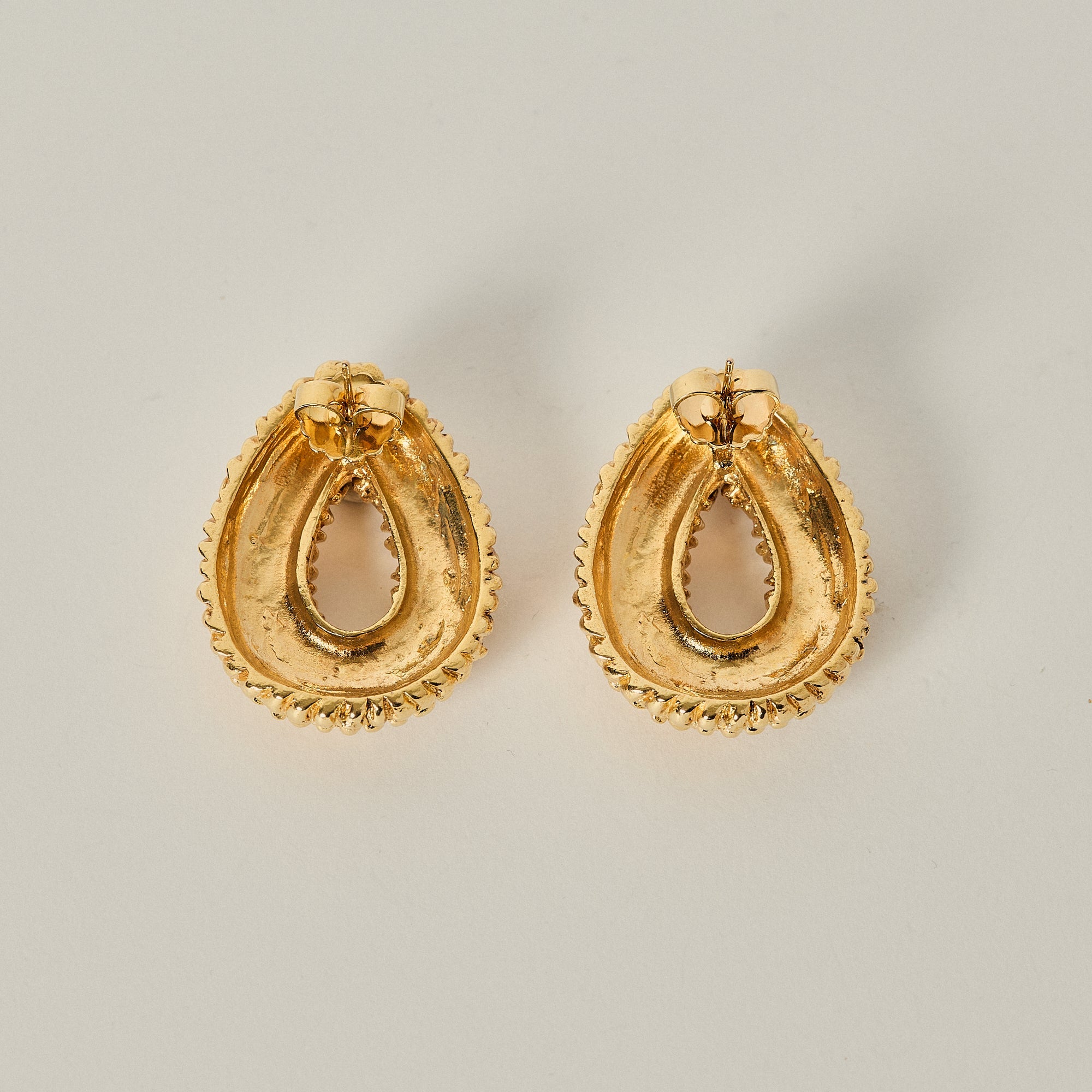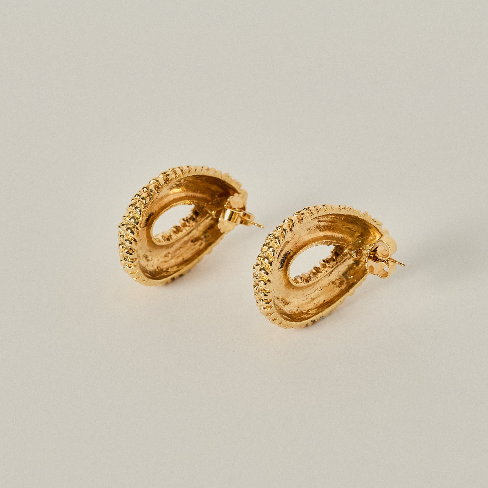 Cette pièce offre une infinité de possibilités de style. Sublimez votre tenue avec ces boucles d'oreilles polyvalentes en étain plaqué or 18 carats, ornées d'un nœud texturé . Elles vous permettront d'exprimer votre style unique avec assurance et style.