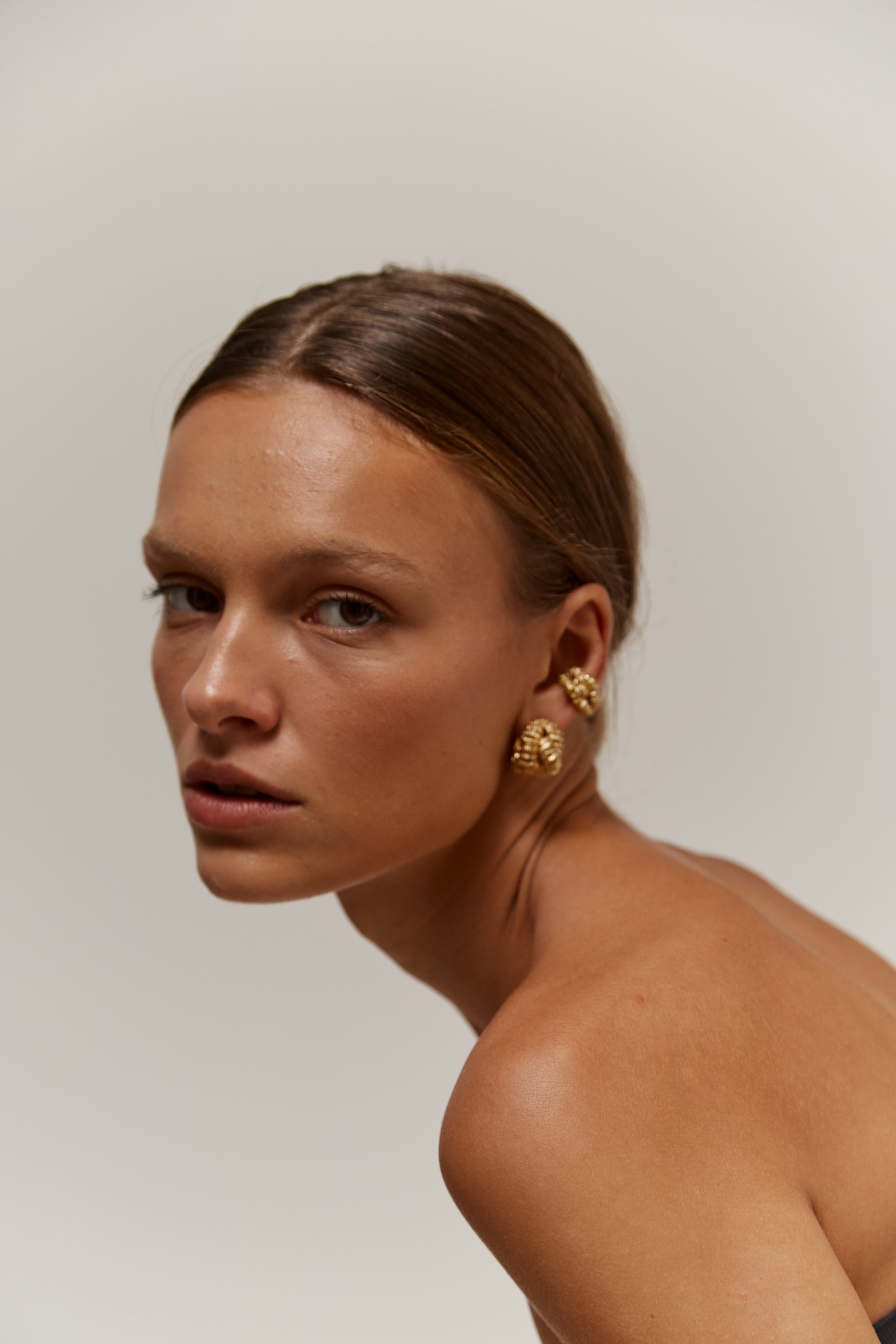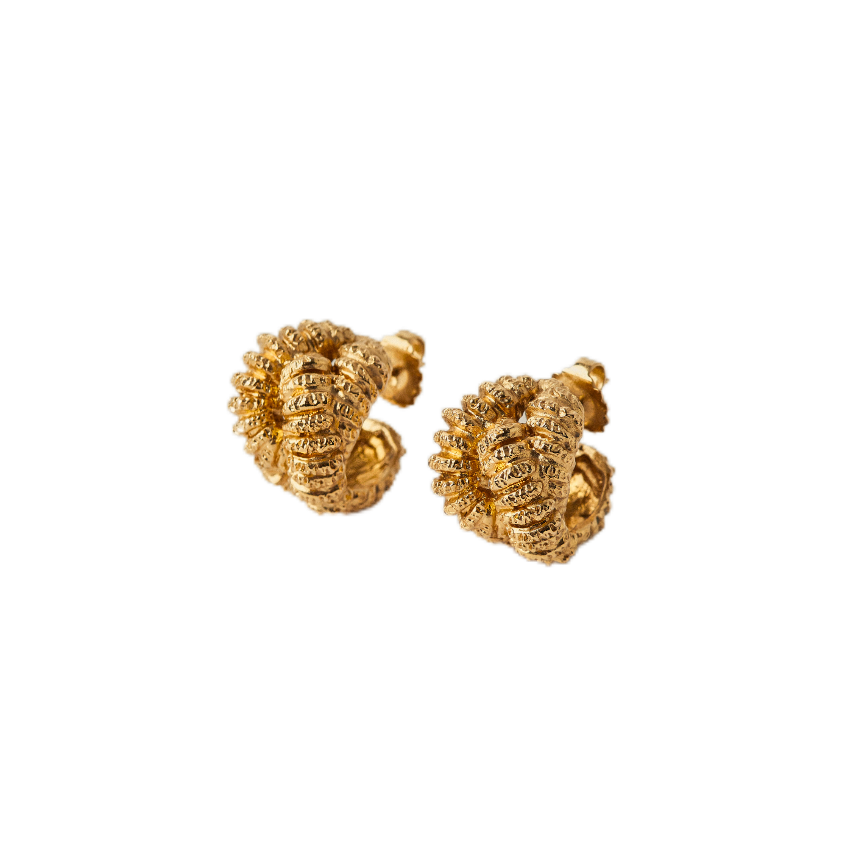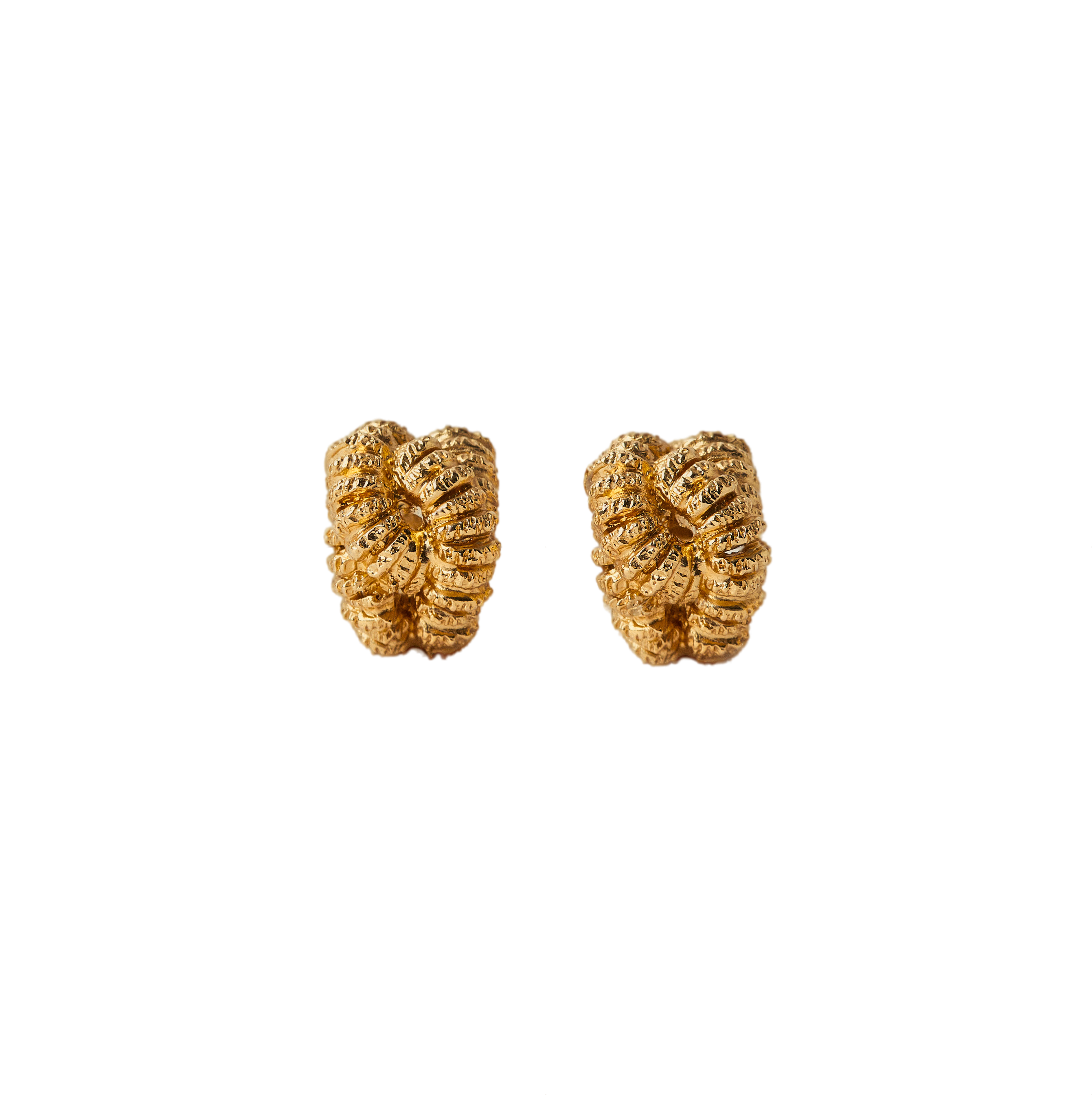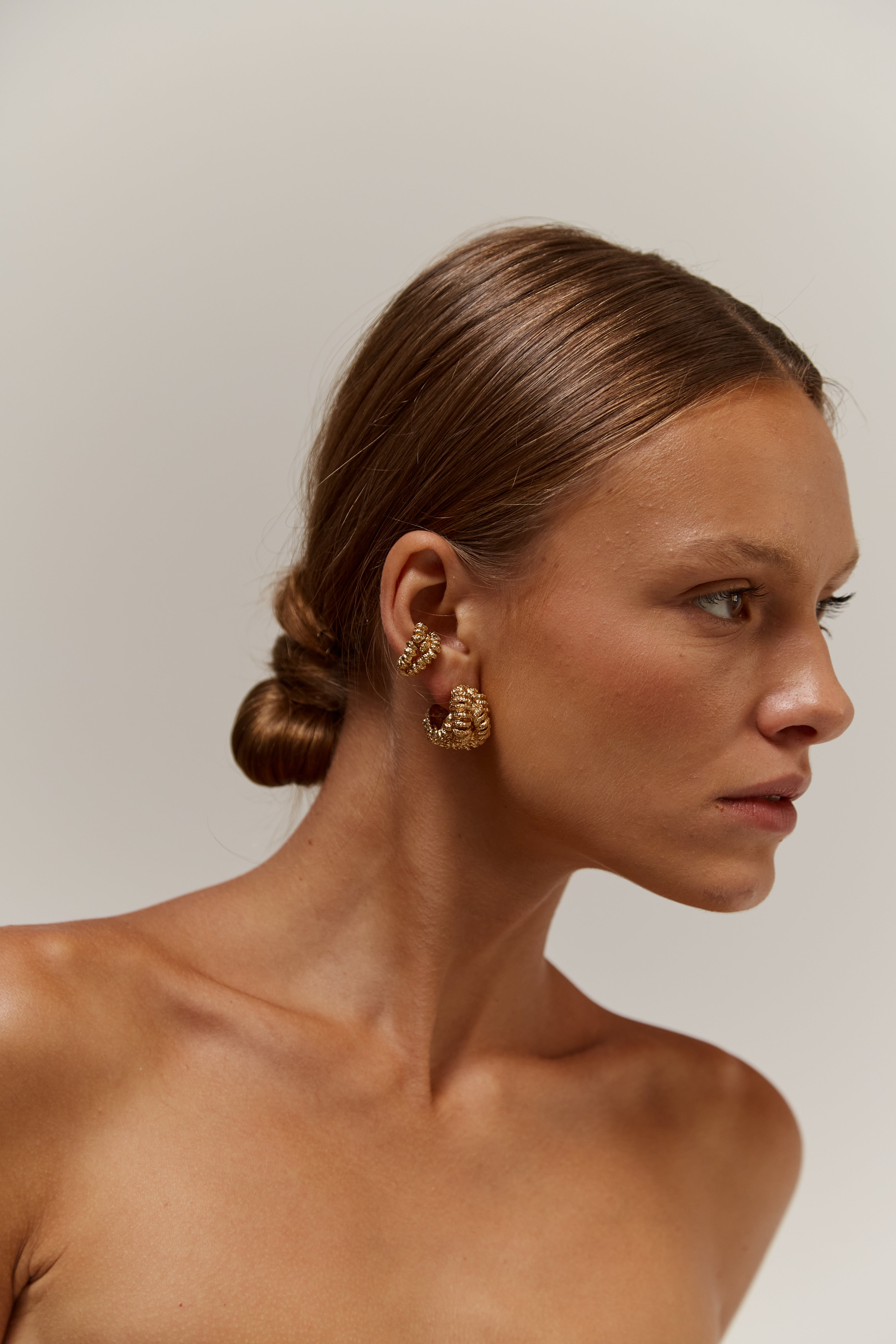 Sublimez votre style avec ces créoles midi texturées faites main, en étain plaqué or 18 carats. Elles se portent aussi bien le jour que la nuit, ajoutant une touche de luxe à toutes vos tenues.