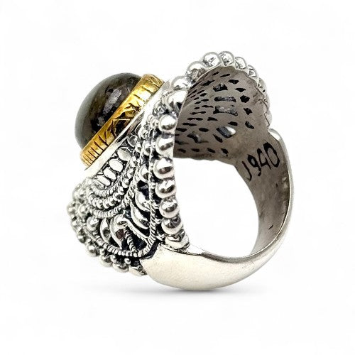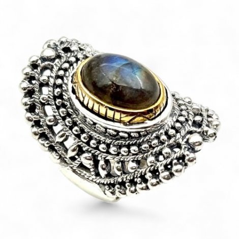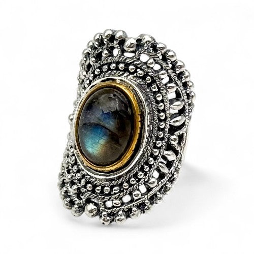 Bague en Argent 925, et laiton plaqué or, serti d'une labradorite.
