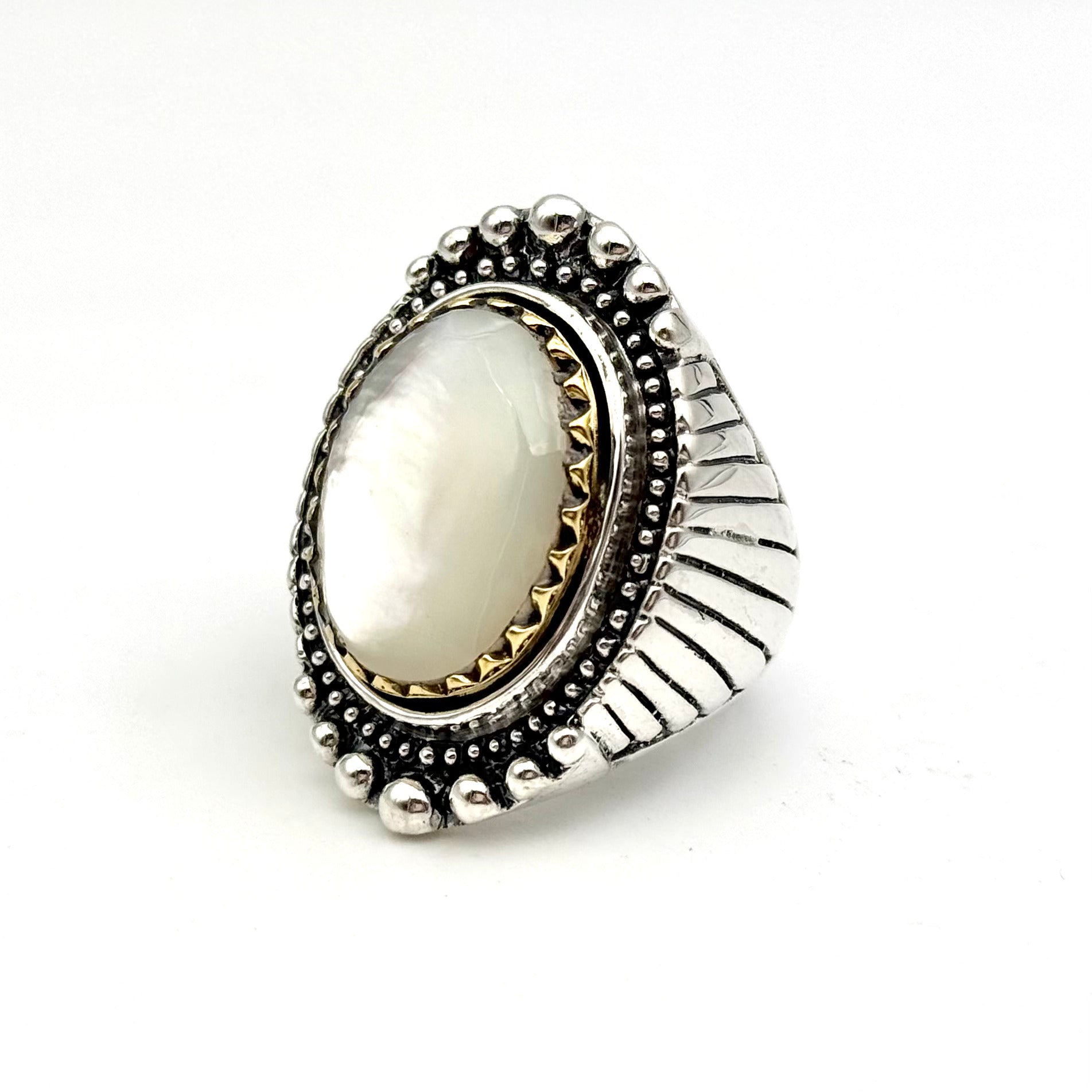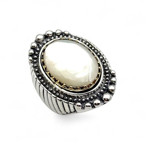 Bague en argent 925 et laiton ornée d'une "nacre".