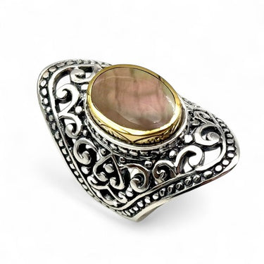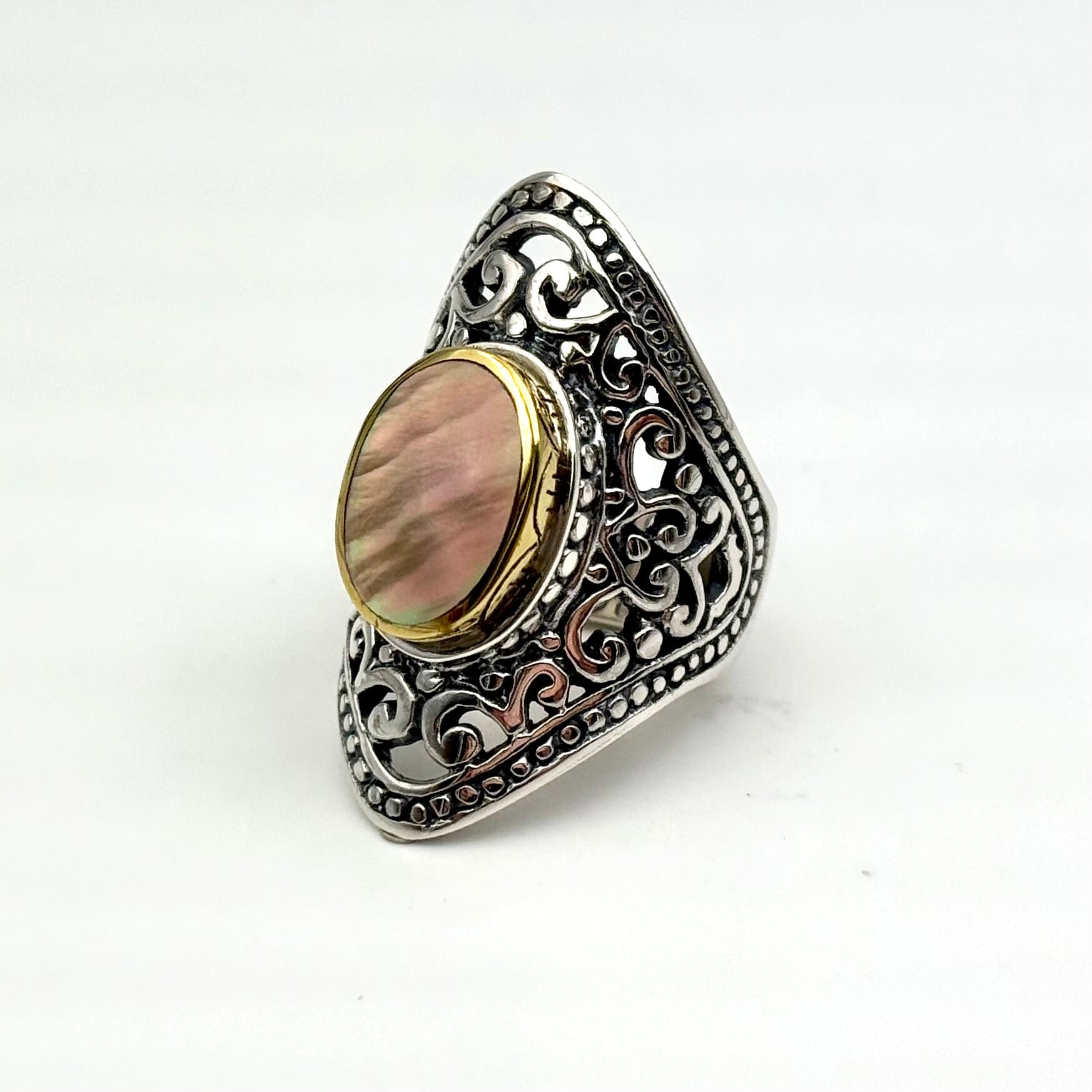 Bague en Argent 925, et laiton plaqué or, orné d'une nacre dorée.
