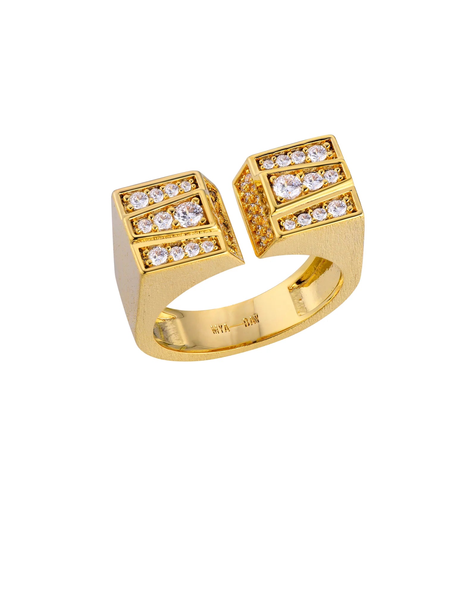 La bague LENNY de MYA—BAY, dorée à l’or fin recyclé 24 carats, est un bijou statement qui ne passe pas inaperçu. Inspirée de Lenny Kravitz, elle allie style vintage et côté masculin pour un look audacieux et unique.