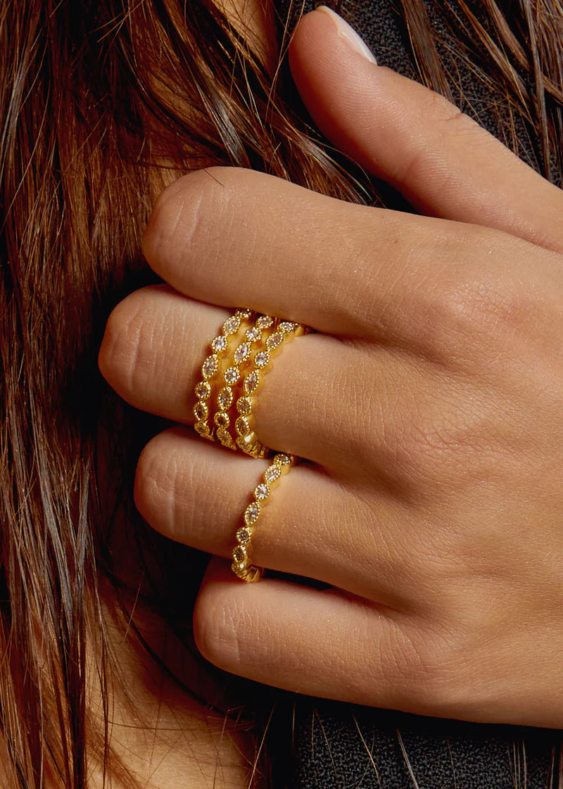 La bague TRIPLE INFINITY de MYA—BAY, dorée à l’or fin recyclé 24 carats, fusionne trois bagues INFINITY pour un look encore plus affirmé. Inspirée du bracelet iconique Infinity, elle affiche une élégance assumée et pleine de caractère.