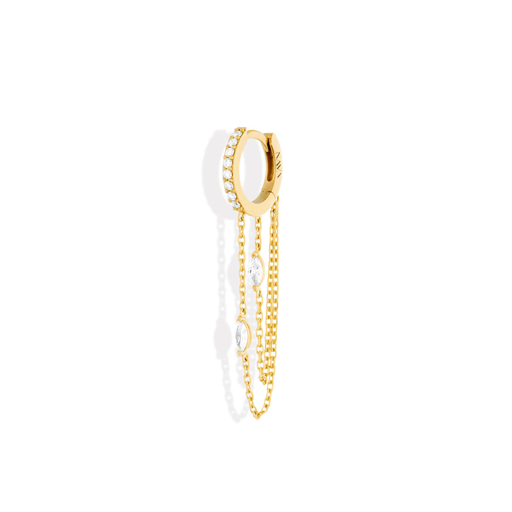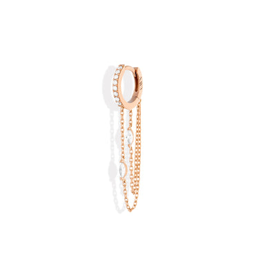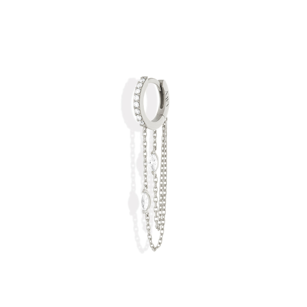 Deux diamants taille "navette" ornent la boucle d'oreille sur les 2 chaines.