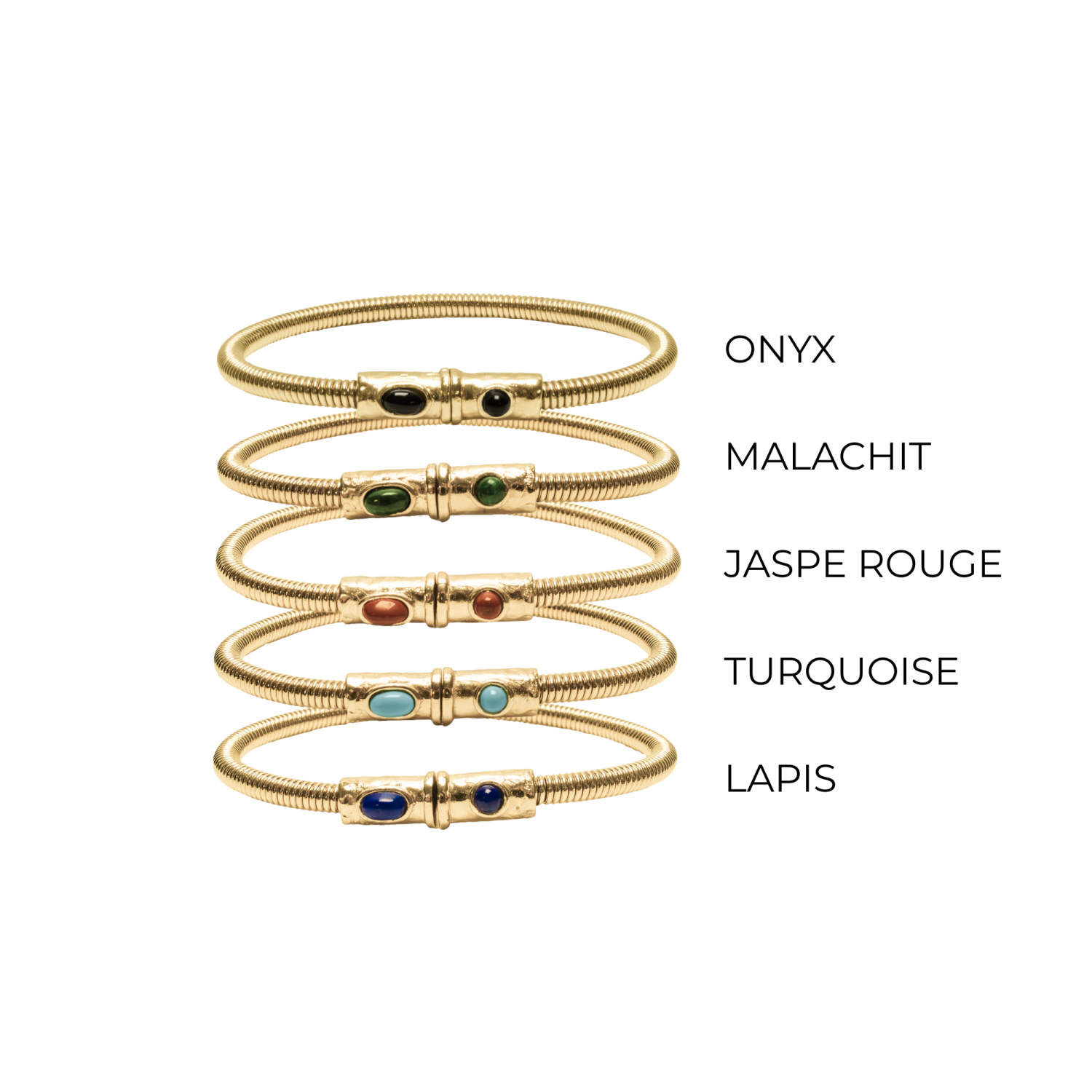 Bracelet en Corde de Basse Big avec fermoir aimanté martelé et pierres naturelles pour femme. Taille standard: 15-16 cm