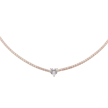 Collier Tennis ajustable, en argent 925, serti de zircons blancs et orné d'une pierre "taille coeur".