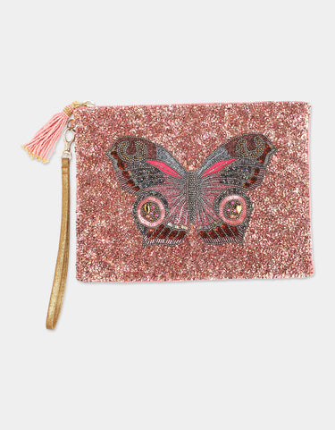 La pochette Butterfly rose est minutieusement brodée à la main. Inspiré par l’univers des papillon, son design en fait un accessoire unique. Elle se porte élégamment à la main grâce à sa dragonne.