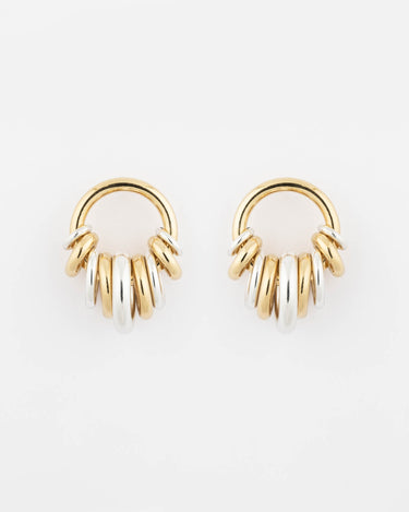 Les boucles d'oreilles Donut Uni Or mélangent l'or et l'argent grâce à plusieurs anneaux disposés sur une base dorée, créant un contraste chic. Une déclinaison plus marquée des Donut Baby Or, pensée pour être portée seule ou en accumulation.
